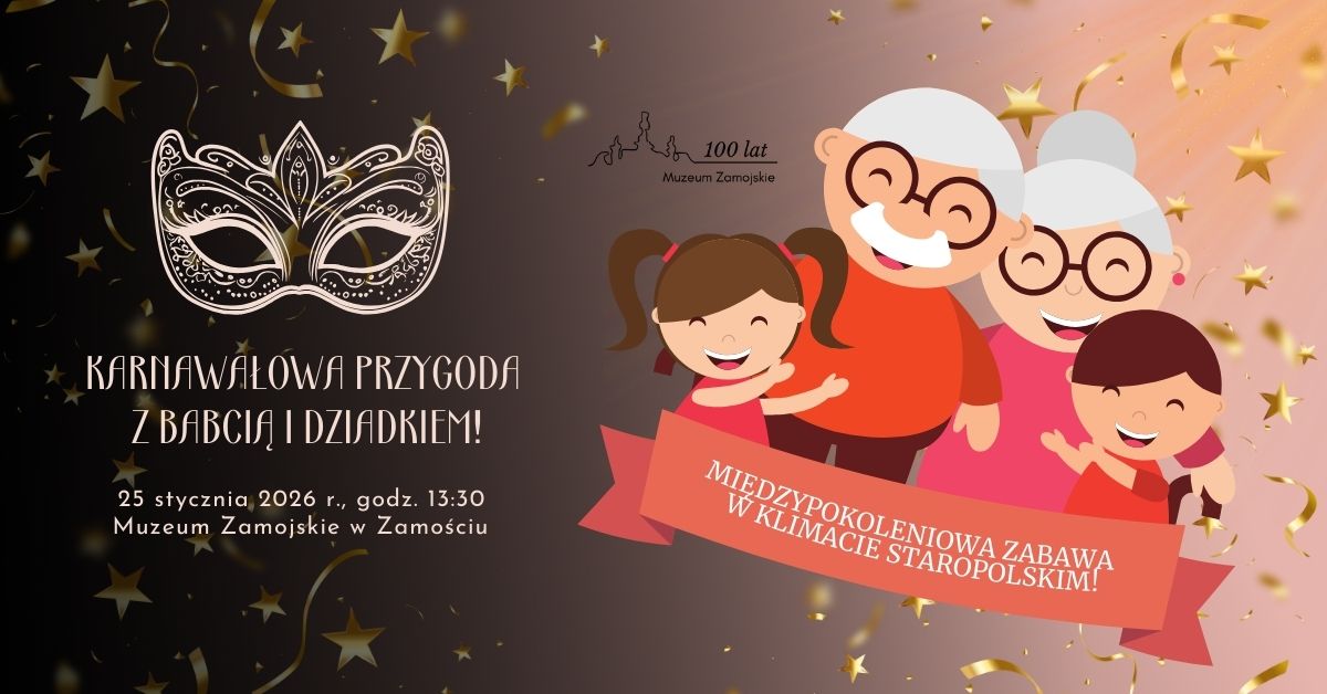 Dzień Babci i Dziadka 2026 | Wydarzenie jubileuszowe 100-lecia Muzeum Zamojskiego Z okazji Dnia Babci i Dziadka Muzeum Zamojskie w Zamościu zaprasza babcie, dziadków oraz wnuki na wyjątkowe karnawałowe spotkanie z historią i kulturą staropolską, organizowane w ramach obchodów 100-lecia Muzeum Zamojskiego. To niepowtarzalna okazja, aby spędzić rodzinny czas w muzeum, połączyć zabawę z edukacją…